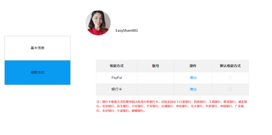 2.您可以通过点击界面右上方头像,在弹出的下拉菜单中点击设置,再点击收款方式进行设置。