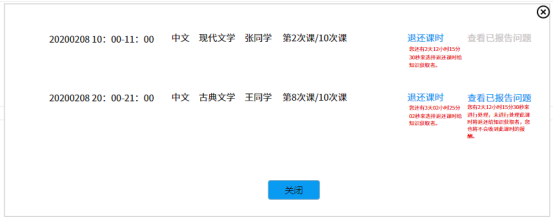 注意:不论因为何种原因,未能按时与学生完成约定的课时,对于对方都是一种不好的体验,因此请尽量避免这种情况的发生。