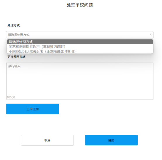 注意:如果某个课时存在争议,则该课时的报酬状态会保持为“结算中”,直到争议问题得到解决。根据解决方式的不同来决定教师是否会获取此课时的报酬。