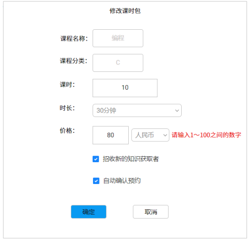 您只需要找到已发布的课时包,将“招收新的学生”及“自动确认预约”的勾选取消即可。