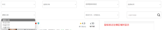 您可以通过价格、国家或地区、时间、课程分类以及所提供的排序方式来快速找到适合自己的教师